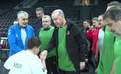 İkili, birlikte geçirdikleri zaman boyunca basketbol toplarını imzaladı. Bu özel anların fotoğraflarını Erdoğan, sosyal medya hesabından paylaşmayı ihmal etmedi.