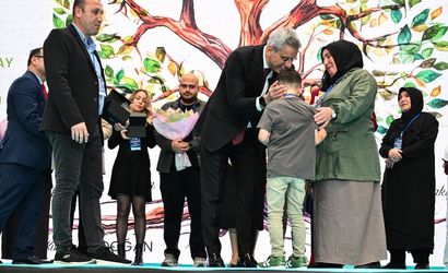 Sağlık Bakanı Kemal Memişoğlu (ortada), TÜRKÖK'ün 10. yılı dolayısıyla Sağlık Bakanlığı Bilkent Yerleşkesi'nde düzenlenen hasta-donör buluşması etkinliğine katıldı.