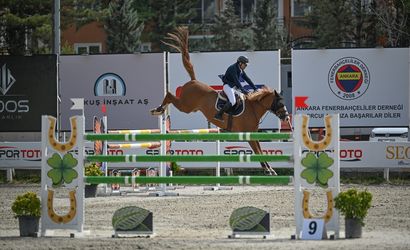 Ankara Atlı Spor Kulübü'nde düzenlenen engel atlamanın en prestijli yarışması Cumhurbaşkanlığı Kupası'nda dereceye giren biniciler belli oldu. "Kutlu" isimli atıyla baraj parkurunu 40.90 saniyede tamamlayan Yüzbaşı Burak Uluçay, (fotoğrafta) Cumhurbaşkanlığı Kupası'nın sahibi oldu.
