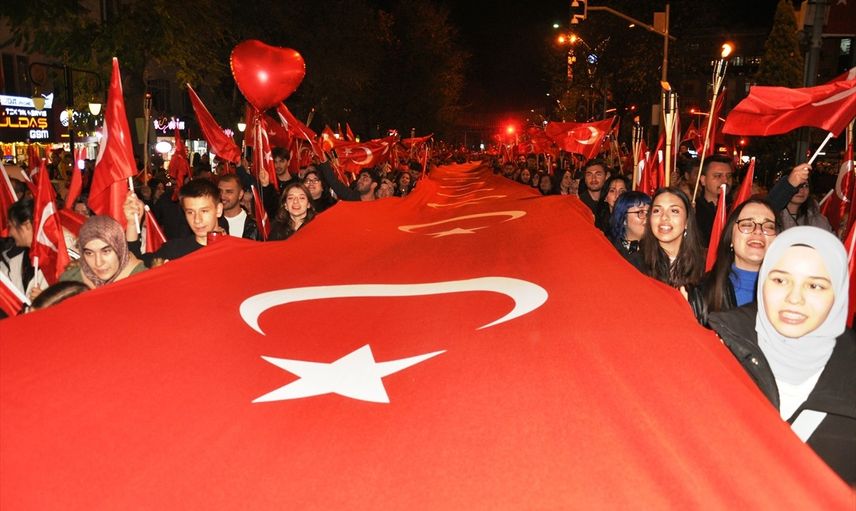 Kütahya ve Çanakkale'de, Cumhuriyet'in kuruluşunun 102. yıl dönümü ve 29 Ekim Cumhuriyet Bayramı nedeniyle fener alayı etkinlikleri düzenlendi.