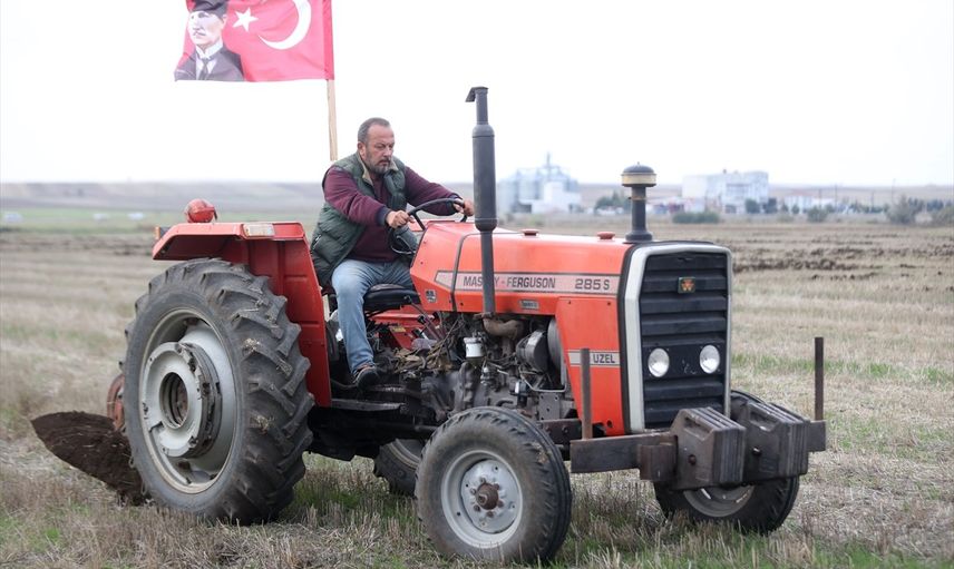 Kırklareli'nin Lüleburgaz ilçesine bağlı Evrensekiz beldesinde ikamet eden Burak Tunçkol (48), Cumhuriyet'in 102. yıl dönümünü kutlamak amacıyla tarlasına pullukla anlamlı bir mesaj bıraktı.