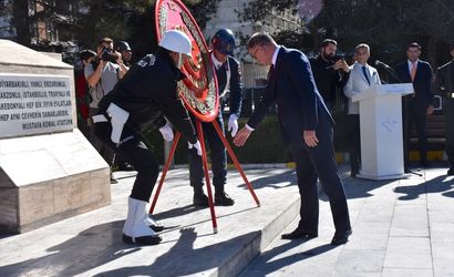Van'da 29 Ekim Cumhuriyet Bayramı kutlamaları kapsamında çelenk sunma töreni düzenlendi. Saygı duruşunda bulunulması ve İstiklal Marşı'nın okunmasıyla başlayan törende, Vali ve Büyükşehir Belediye Başkan Vekili Ozan Balcı, Atatürk Anıtı'na çelenk sundu.