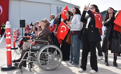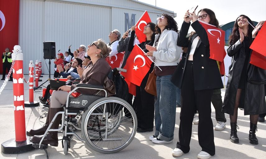 Uçuş sonrası, ellerinde Türk bayraklarıyla tesisin apronunda toplanan yüzlerce katılımcı, hilal ve yıldız şeklinde dizilerek Türk bayrağını oluşturdu. Türk bayrağının yıldız kısmını, Türkiye'nin ilk kadın sivil akrobasi pilotu Semin Öztürk Şener, "Yeni Menekşe" adlı uçağıyla tamamladı.