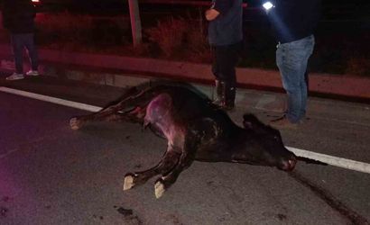 ANTALYA'NIN MANAVGAT İLÇESİNDE AĞILDAN KAÇAN VE D-400 KARAYOLUNDA TRAFİĞİ BİRBİRİNE KATAN İNEK, YOLDAN GEÇEN ARAÇLARIN ÇARPMASI SONUCU TELEF OLDU. AYDINLATMALARIN YANMAMASI NEDENİYLE ZİFİRİ KARANLIK OLAN YOLDA BAŞKA KAZALARIN YAŞANMAMASI İÇİN TRAFİK VE POLİS EKİPLERİ GENİŞ ÇAPLI ÖNLEM ALDI.