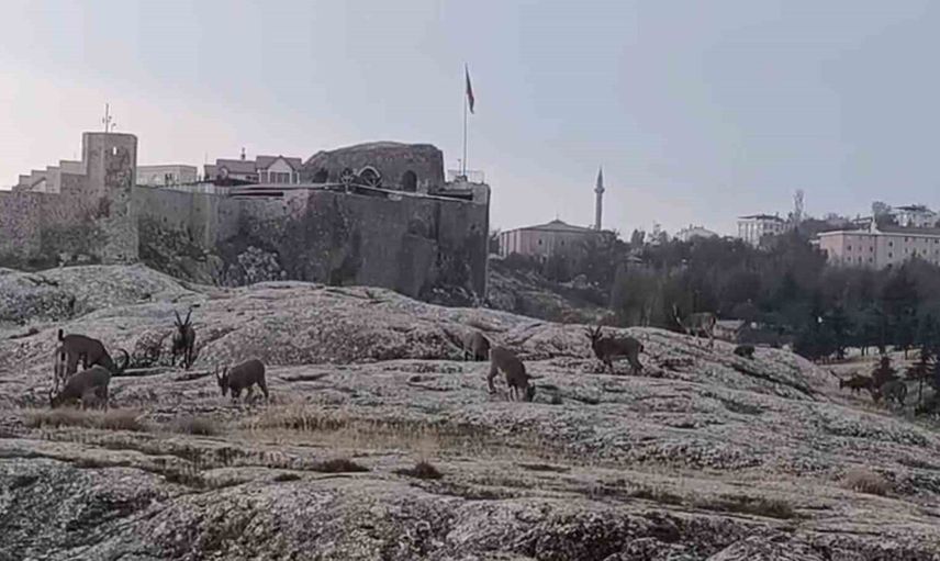 Elazığ’ın tarihi Harput Mahallesi’nde, sabahın erken saatlerinde nesli koruma altında bulunan dağ keçileri gözlemlendi. Bu özel anlar, Harput Kalesi’nin eteklerinde otlayan keçilerin sürü halinde yerleşim alanına kadar inmesiyle kameralara yansıdı.