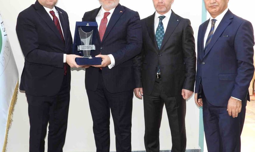 Çukurova Üniversitesi Rektörü Prof. Dr. Hamit Emrah Beriş, Kemal Yurtoğlu ile DAİMFED Genel Başkanı Mustafa Karslıoğlu ve DAİMFED Ankara Şube Başkanı Dalkın Öztorun’a plaket takdim etti. Bu jest, üniversite ve sağlık alanındaki iş birliğinin önemini vurguladı.