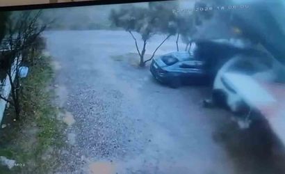 Fırtınanın etkisiyle bir evin önündeki otoparkın çatısı, aniden yerinden sökülerek havaya uçtu. Güvenlik kamerasındaki görüntülerde, rüzgarın aniden şiddetini artırması ve çatının uçma anı açıkça görülüyor. Şans eseri, olay sırasında yaralanan olmadı; ancak park halindeki araçlarda maddi hasar oluştu.