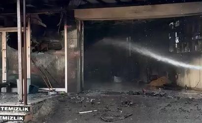 Yangın sonucunda oto tamirhanesi ve içindeki iki araç tamamen kül haline geldi.