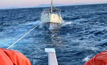 Muğla'nın Datça ilçesi açıklarında meydana gelen bir olayda, makine arızası nedeniyle sürüklenen 10 metre uzunluğundaki yelkenli tekne, içinde iki kişi taşırken zora düştü.