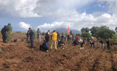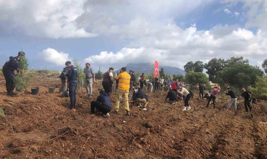 Muğla ilinin Datça ilçesindeki 11 Kasım Milli Ağaçlandırma Günü vesilesiyle gerçekleştirilen etkinlikte, yüzlerce fidan toprakla buluşturuldu.