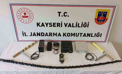 İzinsiz define arayan şahısların durumu fark edilerek jandarma ekipleri tarafından yakalandı. Yakalanan kişilerin yanında, 2 adet seri numarası bulunmayan dijital cihaz, 2 adet alan tarama çubuğu, 1 adet pusula, 1 adet şarj aleti, 1 adet akü ve 1 adet 2 metrelik filtreleme cihazı ele geçirildi.