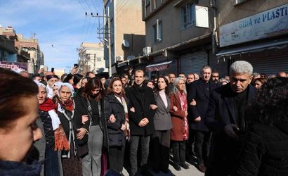 Yürüyüşten sonra konuşma yapan Hatimoğulları, "Partilerin çoğunun grup yaptığı gün, bizler DEM Parti olarak normal şartlarda bugün grubumuzu Türkiye Büyük Millet Meclisi’nde yapmalıydık. Ancak olağanüstü şartlardan geçiyoruz. Şu an Nusaybin’de, sınırın sıfır noktasındayız. Birkaç adım ötesinde Kamişlı’da Kürt kardeşlerimiz şiddetli bir savaş tehlikesi altındalar. 10 Mart Mutabakatı’yla ilgili görüşmeler sürerken, birden masayı devirip savaş ve çatışmanın önü açıldı. Halep’te özellikle Şeyh Maksud ve Eşrefiye mahallelerinde Kürt halkına yönelik amansız bir katliam başladı. Bu katliamı başlatan HTŞ güçlerini kınıyoruz. Savaşa hayır, barış hemen şimdi diyoruz" dedi.