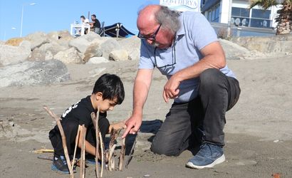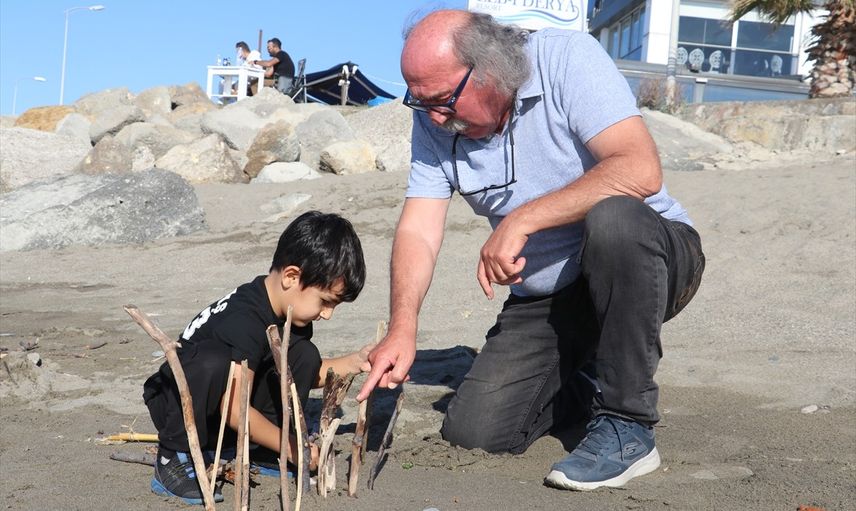 Zonguldak'ın Çaycuma ilçesinde yaşayan emekli ilkokul öğretmeni Mehmet Türkçelik, sahildeki ağaç ve amfora parçalarını sanata dönüştürüyor.