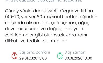 Ayrıca, soba ve doğal gaz kullanımıyla ilişkili olası zehirlenmelere karşı tedbirli olunması da gerektiği ifade edildi. Fırtınanın etkisinin 30 Ocak 2026 Cuma günü saat 18.00’e kadar sürmesi bekleniyor.