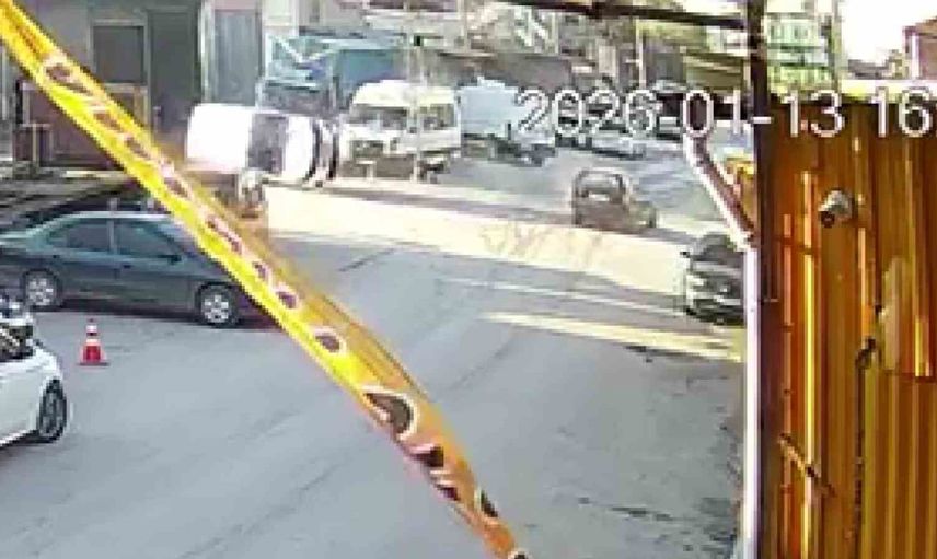 Olay anı, çevredeki bir işyerinin güvenlik kameraları tarafından kaydedildi. Görüntülerde, otomobilin seyir halindeyken aniden yola çıkan hafif ticari araca çarptığı ve sonucunda aracın yan yattığı görülüyor.