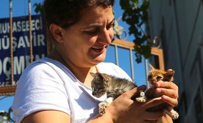 Depremlerden etkilenen Hatay'da iki çocuk annesi Canan Göçmen, çok sayıda sahipsiz kedinin bakımını üstleniyor.