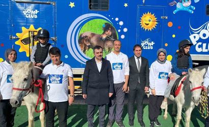 Pony Club tırını ziyaret eden çocuklar, pony atlarla buluşmanın mutluluğunu yaşadı. Eğitim alanı faydalı ve eğlenceli aktivitelerle dolup taşarken, çocuklar pony atlarına binerek keyifli anlar geçirme fırsatı buldu.