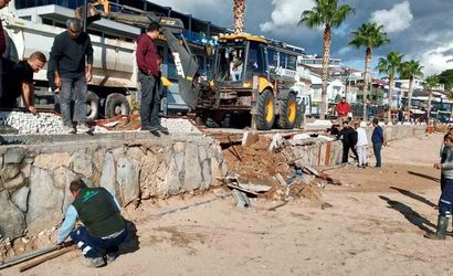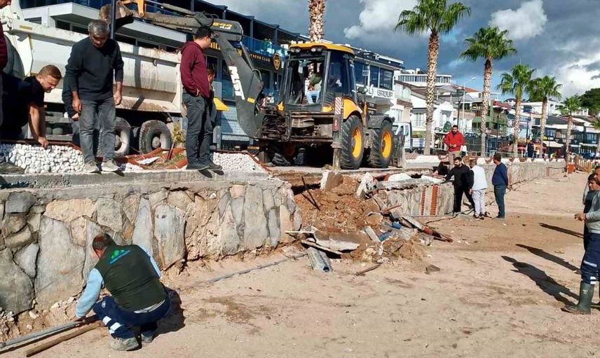 Didim’de etkili olan şiddetli yağışların ardından, Altınkum Mahallesi Yalı Caddesi'nde oluşan bozulmalar için Aydın Büyükşehir Belediyesi onarım çalışmalarına koyuldu.