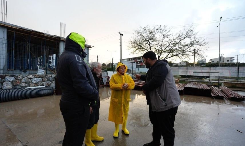 Didim'de etkili olan şiddetli yağışlar, ilçede yaşamı olumsuz etkilerken, Didim Belediyesi ekipleri, su birikintileri ve baskınları önlemek amacıyla çeşitli noktalarda yoğun bir çalışma yürüttü.
