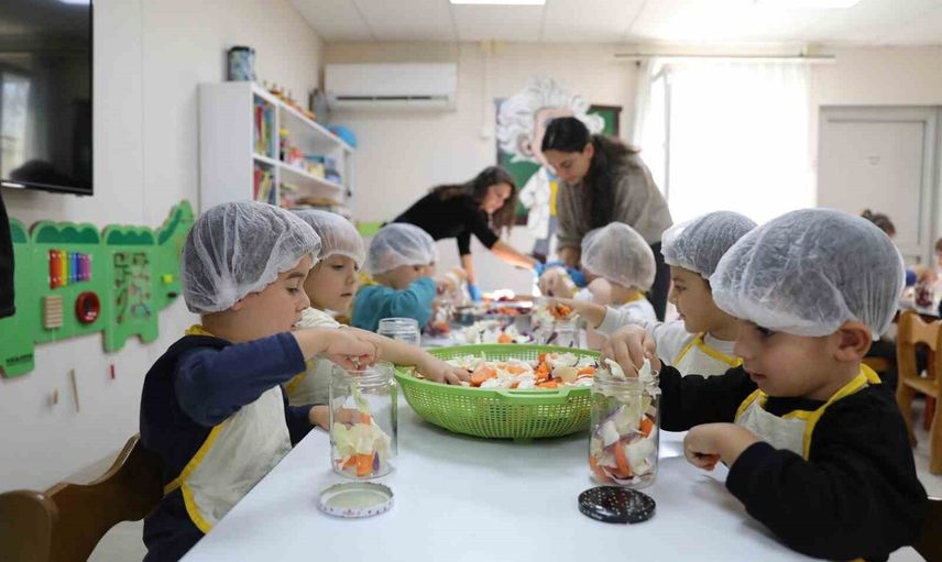Etkinlikte, çocuklar hem keyifli vakit geçirdi hem de kendi turşularını hazırlamanın mutluluğunu yaşadı. Öğretmenleri rehberliğinde, malzemeleri tanıyan minikler, kavanozları doldurarak sürecin her aşamasına aktif olarak katıldılar.