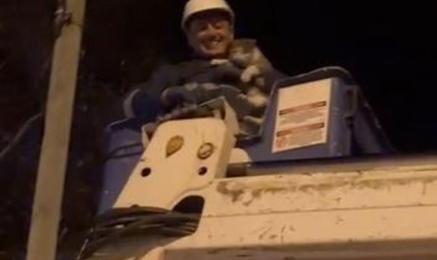 Ardahan'da, elektrik direğinin tepesinde mahsur kalan bir kedi, Aras Elektrik Dağıtım AŞ (EDAŞ) ekiplerinin hızlı müdahalesiyle kurtarıldı.