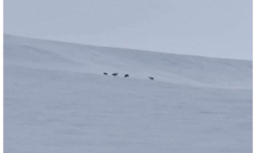 Gelen bilgilere göre, yiyecek bulmakta sıkıntı çeken kurtlar, yerleşim alanlarına yakın bölgelerde ortaya çıktı. Görüntülerde, karla kaplı arazide sürü halinde ilerleyen kurtlar yer alıyor.