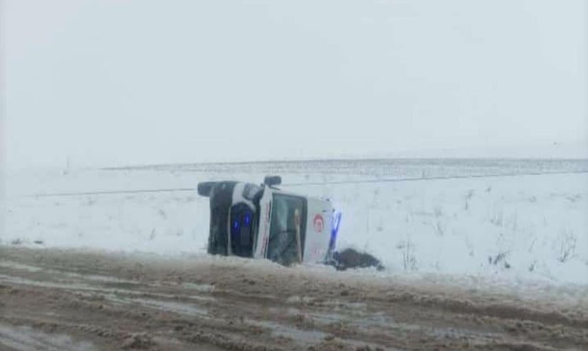 Diyarbakır'ın Bismil ilçesinde, zorlu kış şartlarında sağlık ekibini taşıyan bir ambulans devrildi. Kazada 3 sağlık personeli yaralanarak hastaneye kaldırıldı.