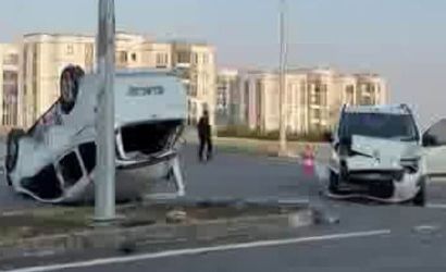 Olay, Oğlaklı Mahallesi'nde seyir halindeki iki aracın birbirine çarpmasıyla gerçekleşti. Çarpmanın etkisiyle bir araç ters dönerek yolda devrildi.