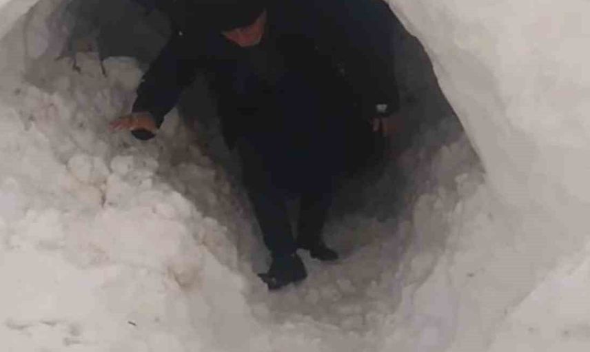 Bölgede yaşayan besici Nusret Kömür, hayvanlarını beslemek için kardan bir tünel açarak ahırına girmeyi başardı. Bu enteresan anlar, Kömür’ün cep telefonuyla kaydedildi.