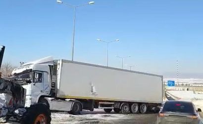Diyarbakır’da etkili olan kar yağışı sonrasında oluşan buzlanma, bir tırın yoldan çıkmasına sebep oldu.