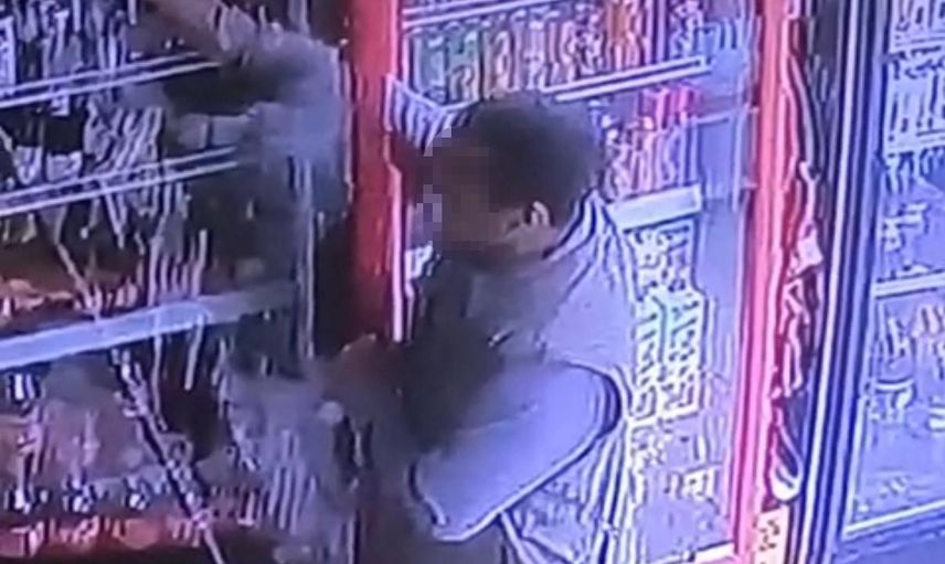 Marketin girişinde bir süre duraksayan hırsız, çaldığı içecek ile birlikte uzaklaştı. O anlar dükkanın güvenlik kamerası tarafından kaydedildi. Bu tür olayların önlenmesi için güvenlik önlemlerinin artırılması gerektiği vurgulanıyor.