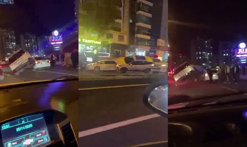 Kaza, Mastıfroş Caddesi üzerinde gerçekleşti. Plakası belirlenemeyen aracın sürücüsü, kontrolden çıkarak yolda duran başka bir aracın üzerine çıkmayı başardı. Bu sıra dışı kazada iki kişi yaralandı.