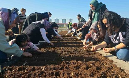 DİYARBAKIR BÜYÜKŞEHİR BELEDİYESİ TARAFINDAN DÜZENLENEN TIBBİ VE AROMATİK BİTKİLER YETİŞTİRİCİLİĞİ ATÖLYELERİNE KATILAN KADINLAR, UYGULAMALI EĞİTİM KAPSAMINDA SAFRAN EKİMİ GERÇEKLEŞTİRDİ.