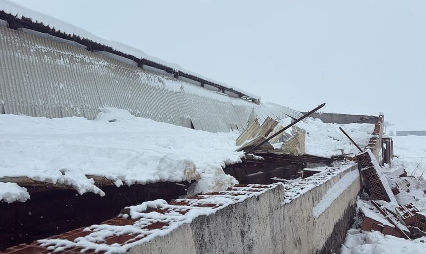 Yüksek miktarda karın birikmesi sonucu çökme meydana geldi. Ahırın çatısı altında kalan 15 büyükbaş hayvandan 11’i telef olurken, 4’ü yaralı olarak kurtarıldı.