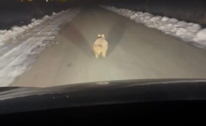 Kurt, sürücünün şaşkın bakışları arasında kilometrelerce koşarak mahalleye doğru ilerledi. O anlar, cep telefonu kamerasıyla kaydedildi ve sosyal medyada büyük ilgi gördü.