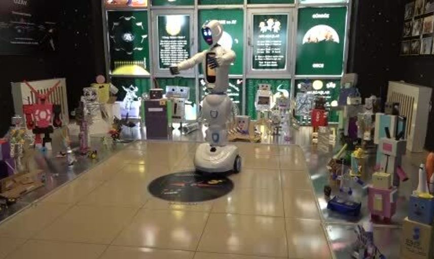 Diyarbakır'ın Kayapınar ilçesindeki Mezopotamya İlkokulu öğrencileri, atık malzemelerden yaptıkları robotları sergiledi.