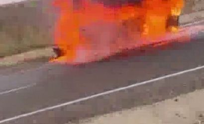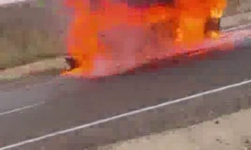 Diyarbakır'ın Lice ilçesinde, seyir halindeki bir otomobil, beklenmedik bir anda alev alarak büyük bir yangın çıkardı.