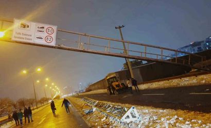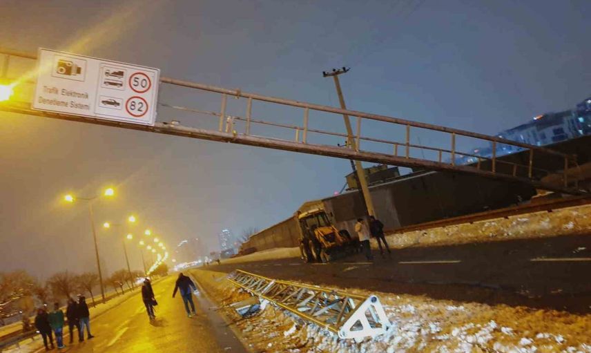 Diyarbakır'da Elazığ Caddesi Fuar önü mevkiinde, karşı şeritten gelen bir kamyonun çarptığı trafik denetim levhaları hasar gördü.