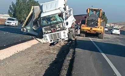 DİYARBAKIR'IN ÇINAR İLÇESİNDE İKİ TIR VE BİR OTOMOBİLİN KARIŞTIĞI ZİNCİRLEME TRAFİK KAZASINDA 3 KİŞİ YARALANDI.
