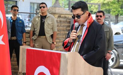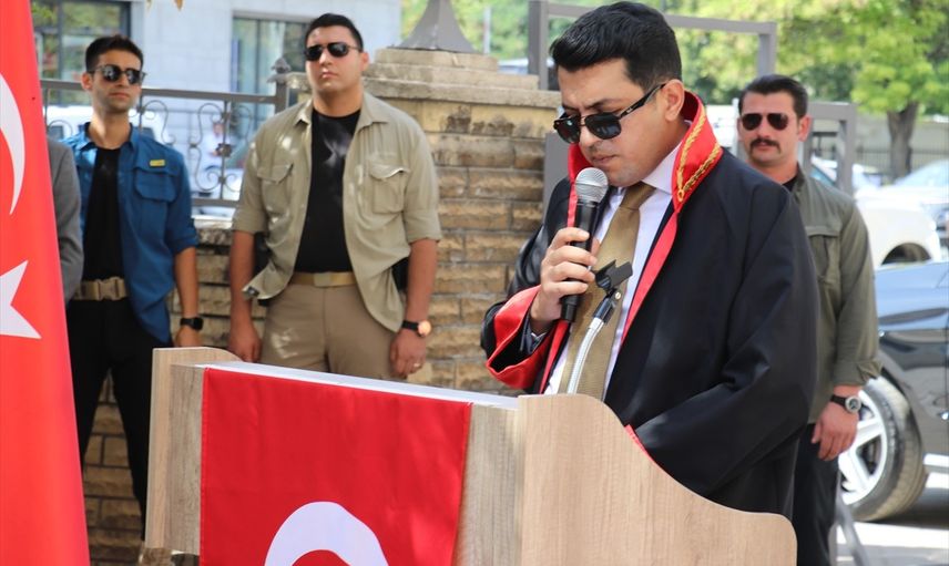Törende Cumhuriyet Başsavcısı Adem Aydemir, Bölge Adliye Mahkemesi Başkanı Ünal Bingül, Bölge İdare Mahkemesi Başkanı Fuat Küçük ve Baro Başkanı Mesut Öner, meydandaki Atatürk Anıtı'na çelenk sundu. Başsavcı Aydemir, saygı duruşunun ardından yaptığı konuşmada, adaletin önemi üzerinde durdu ve özellikle Filistin'deki insanlık dramına dikkat çekti.