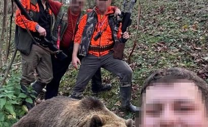 (RESİMDEKİ ŞAHISLARIN YÜZLERİNİ BLURLARMISINIZ) DOĞU KARADENİZ BÖLGESİ’NDE POPÜLASYONU HIZLA ARTARAK YERLEŞİM ALANLARINA KADAR İNEN AYILAR NEDENİYLE YAPILAN ŞİKAYETLER ÜZERİNE DOĞA KORUMA VE MİLLİ PARKLAR ŞUBE MÜDÜRLÜKLERİNCE BELİRLENEN İLLERDE SÜREK AVI BAŞLATILIRKEN, TRABZONLU AVCILAR TARAFINDAN BİR AYI VURULARAK ETKİSİZ HALE GETİRİLDİ.