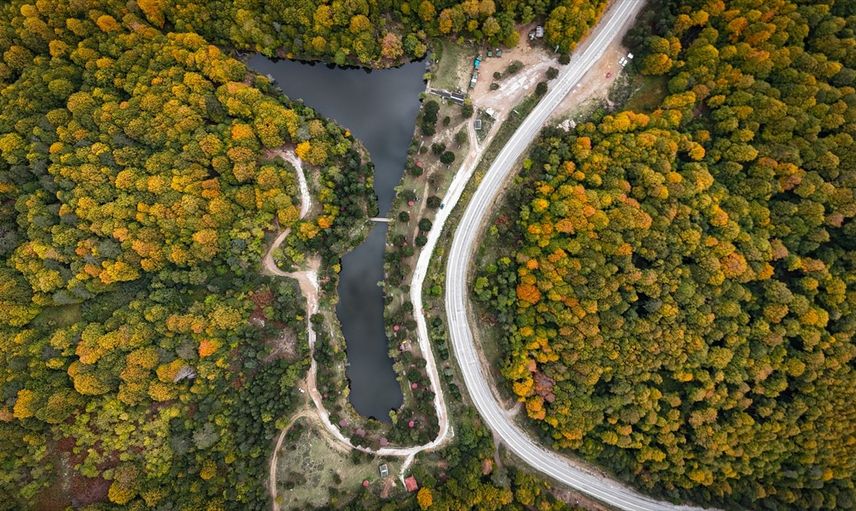 İç Ege Bölgelerinde yer alan Kütahya'nın Domaniç ilçesi, %53'lük orman örtüsü ile doğal güzellikler açısından zengin bir alan. Sonbaharın etkisiyle ağaçların yaprakları sararmış durumda.