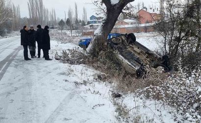 Kütahya'nın Domaniç ilçesinde, gizli buzlanma sonucu bir minibüs kontrolden çıkarak şarampole yuvarlandı.