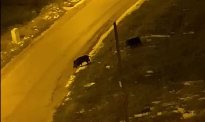 Bir vatandaş, akşam saatlerinde evinin önünde geçen domuzları cep telefonuyla kaydetti. Görüntülerde, iki domuzun bulundukları sokaktan geçerek şehir dışına doğru ilerlediği gözleniyor.