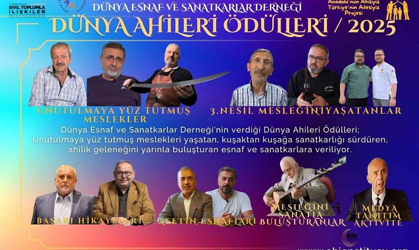 Dünya Esnaf ve Sanatkarlar Derneği-Ahi Enstitüsü, geleneksel olarak düzenlenen Dünya Ahileri Ödülleri'ni bu yıl da sahipleriyle buluşturdu. 2025'te altı farklı kategoride toplamda 12 esnaf ve sanatkâra ‘Dünya Ahisi Ödülü’ verildi.