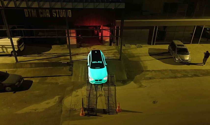 Türkiye’de sadece 7 adet bulunan bu özel otomobilin kaplaması, 210 mikron kalınlığında TPU PPF kullanılarak gerçekleştirildi. Gündüzleri bembeyaz görünen bu araç, geceleyin aydınlatıcı bir efektle parlak yeşil renge dönüşüyor. Bu durum, aracın üzerindeki şeffaf kaplamanın güneş ışığını toplayıp karanlıkta enerjiye dönüştürmesine bağlıdır.