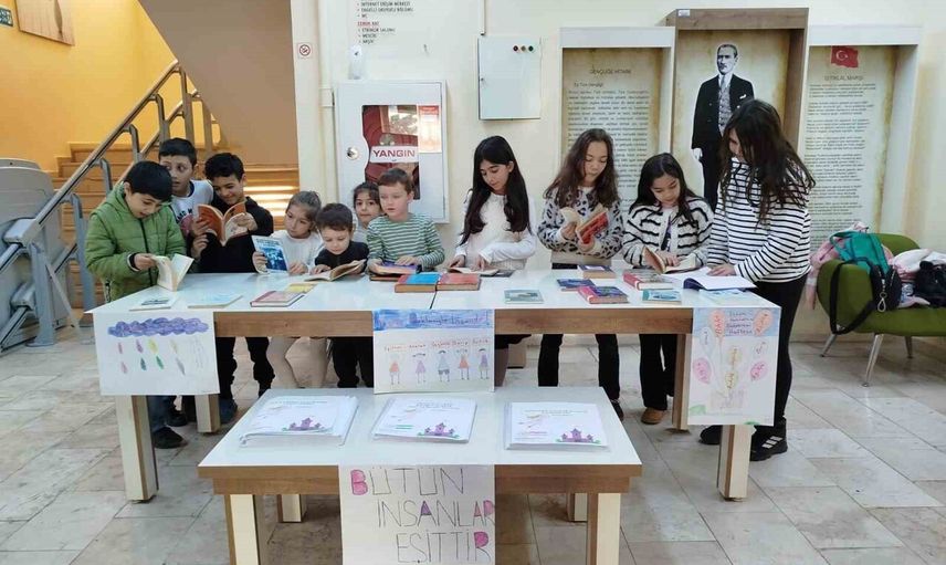 İlçe Halk Kütüphanesi’nde gerçekleştirilen etkinlikte, öğrenciler insan hakları temalı resimler çizerek duygularını ve düşüncelerini sanat yoluyla ifade etme fırsatı buldular. Ayrıca kütüphanede açılan insan hakları konulu kitap sergisi, öğrencilere temel hak ve özgürlükler hakkında bilgi edinmelerine yardımcı oldu.
