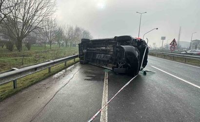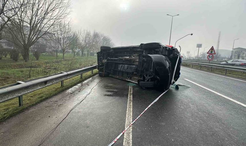 Zonguldak’ın Ereğli ilçesindeki özel bir hastaneye yönlendirme yapılan ambulans, C.T. idaresindeki 34 JY 7510 plakalı araçla yola çıktı. Sürücü, direksiyon hakimiyetini kaybederek bariyerlere çarptı ve ambulans devrildi.