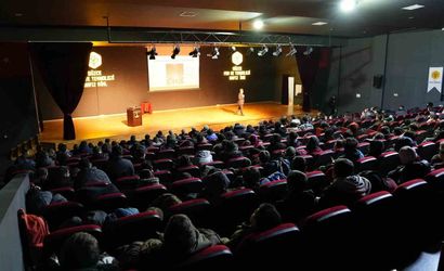 Öğrenciler ve öğretmenler tarafından dikkatle izlenen konferansta, tarih içerisinde yer alan çeşitli dönemlerden örnekler verilerek, günümüz ve gelecekle ilgili bilgiler interaktif bir şekilde paylaşıldı. Prof. Dr. Alkan, etkinlik boyunca katılımcıların sorularını yanıtlayarak, gençlerin düşünsel gelişimlerine katkı sağlamaya yönelik değerli yorumlar sundu.