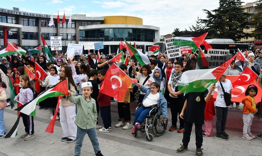 Düzce'de, Gazze'ye insani yardım göndermek amacıyla yola çıkan ve İsrail'in saldırısına uğrayan Küresel Sumud Filosu'na destek için bir yürüyüş gerçekleştirildi.